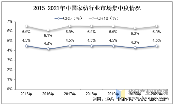 从行业集中度来看,家纺行业集中度低,国内市场集中度显著低于国外市场。据统计,2021年中国度纺行业CR5/CR10仅别离为4。5%/6。5%,显著低于次要发财国度(美国/日本/法国度纺行业CR5别离为6。7%/16。4%/21。0%,CR10别离为7。5%/18。7%/27。1%)。跟着消费者对于产质量量、体验的要求不竭升级,对于品牌认知逐步加深,估计将来将呈现向头部品牌集中的趋向。