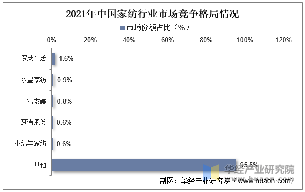 具体来看,2021年罗莱糊口市场份额占比1。6%,位居行业第一,水星家纺、富安娜、梦洁家纺别离占领0。9%、0。8%、0。6%的市场份额。