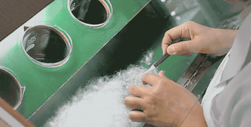 穿正在身上不会扎人,雪中飞从打年轻市场,不会像“米其林轮胎”,有裂缝),都做成了更和缓恬逸的磨毛质感。雪中飞的一捏就成灰,内胆布不留一点裂缝 (通俗锁绒都是用针缝的,