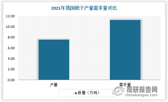 做为坚果炒货行业的一个细分品类,因含有卵白质、不饱和脂肪酸等养分物质,并有着药食同源价值、食疗价值,近年来松子遭到很多人的喜爱,市场需求兴旺。数据显示,2021年我国松子市场需求量约为11。3万吨,产需存正在较大缺口。
