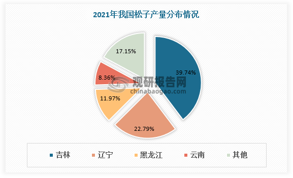 我国松子次要产区位于东北地域,包罗、辽宁、等省份,别离占比39。74%、22。79%、11。97%,以红松子为从。云南松子产量排名第四位,占比8。36%,以落水松子为从。