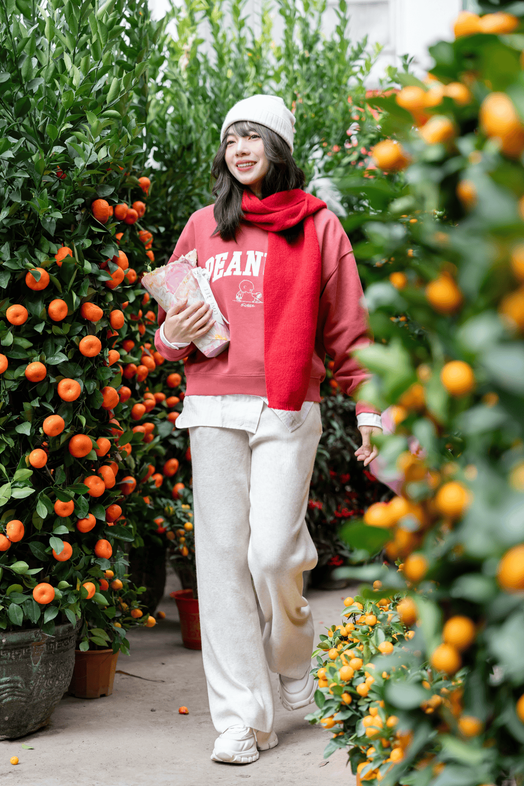 换上一条自带垂坠感的牛仔长裤,不只显得复古时髦,利落宽松的裤型,更能hold住挑选年货的繁杂过程。