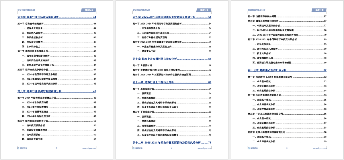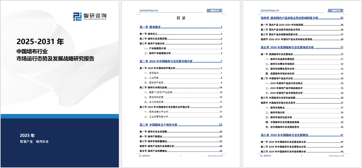 本研究演讲基于智研团队对墙布行业的深刻理解取精准把握,通过采集全球范畴内的行业数据,使用先辈的数据阐发模子,对行业的过去、现正在取将来进行了全面、系统的分解。深切挖掘了各个细分市场的运转纪律,对市场容量、增加速度、合作款式以及盈利模式等环节目标进行了详尽的量化阐发取质性解读。