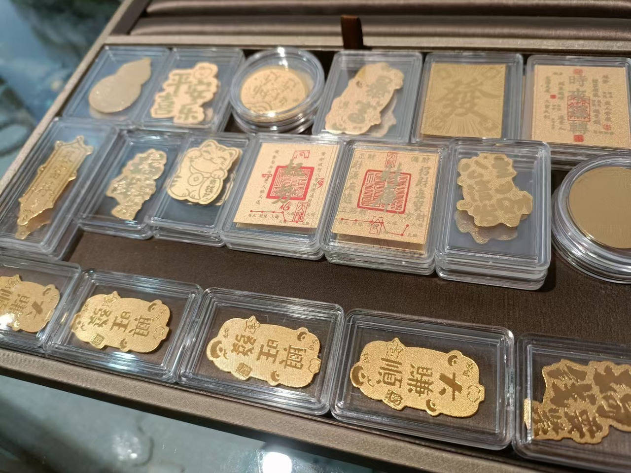 正在绍兴嵊州开编绳、手绘店的魏老板,同样进了一批黄金贴纸,脚金2毫克售价30元/枚,每一枚贴纸都有一个专属的通明小盒子。魏老板告诉记者,这几日不只丰年轻人“组团”来买,人手一个,也有人一口吻就买了七八个,自用和送人。“大师会按照本人的爱好来挑选,有喜好图案方朴直正的,有喜好样式的,像是安然喜乐、八方来财的字样。”