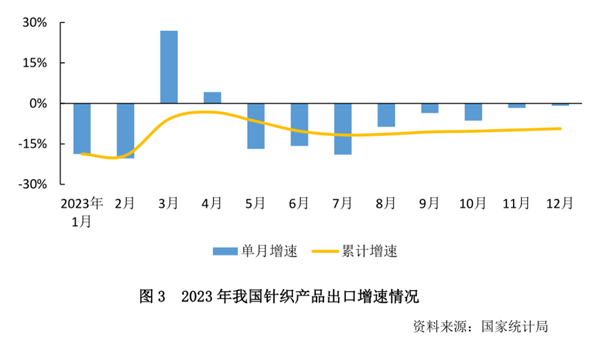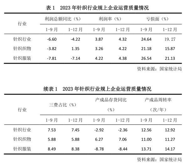 2023年,针织行业面临的外部环境复杂严峻,新冠肺炎感染疤痕效应、地缘政治冲突、大国博弈加剧等导致海外需求萎缩、内生动力不足、国际订单转移,行业运营质效承压。但全行业顶住压力,攻坚克难,创新求变,千方百计化解不利因素,行业整体回升向好,营收、利润、出口均出现边际改善。