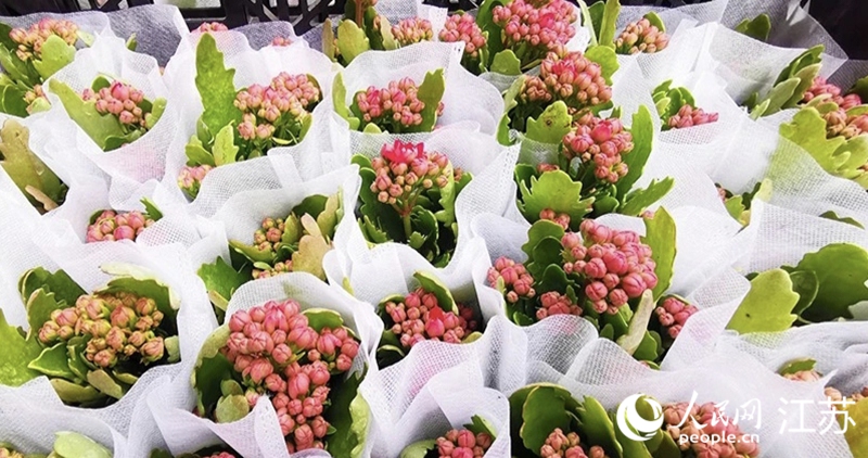 下战书2点,江苏邳州市八镇刘集村的雪卉大棚内一片忙碌。承包户任雪莲带着十几名工人将一盆盆含苞待放的长命花打包拆箱,来自广东、浙江、等地的电商订单目不暇接。